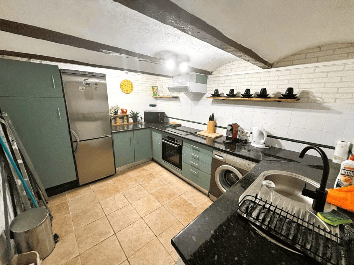 Al acceder a la vivienda, te recibe un acogedor salón que destaca por su abundante luz natural y su chimenea, creando un ambiente cálido y agradable desde el primer momento. Bajando unos escalones encontramos una cocina de estilo moderno y funcional, perfectamente diseñada para el día a día.
